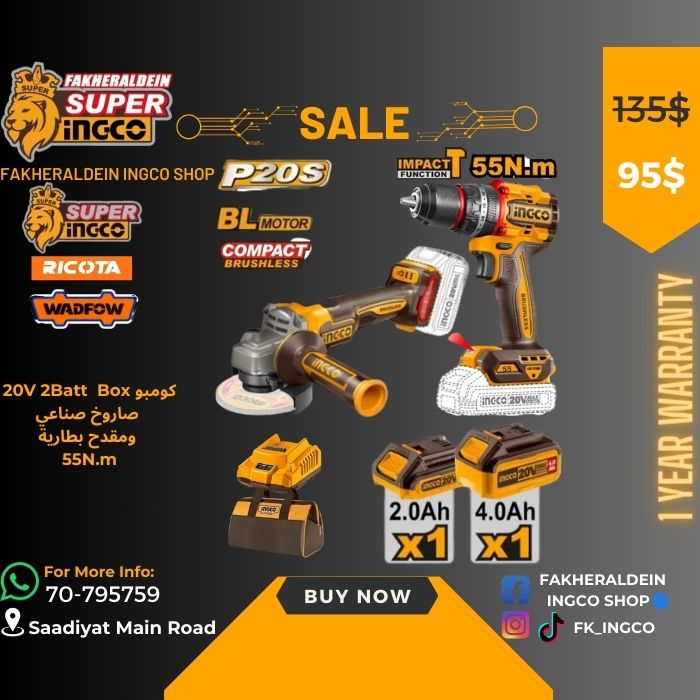 20V 2Batt Box كومبو صاروخ صناعي ومقدح بطارية 55N.m