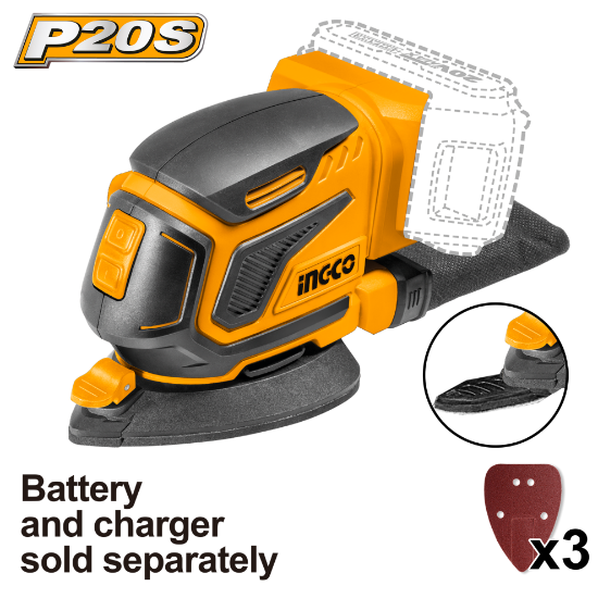 Voltage:20V No-load speed:13000rpm With 3pcs sand paper Battery and charger sold separately Packed by color box