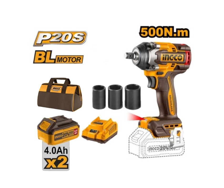 20V 2Batt 4A+Char+Box BL 500N 1/2″ فرد شد عزق بطارية