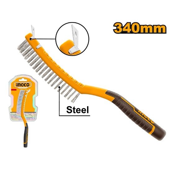 Steel wire brush Material:steel Length:340 mm Plastic handle,3 rows With a shovel knife Packed by double blister