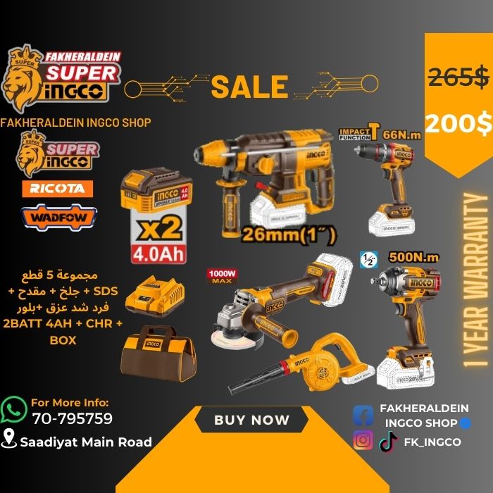 مجموعة 5 قطع SDS + جلخ + مقدح + فرد شد عزق +بلور 2BATT 4AH + CHR + BOX
