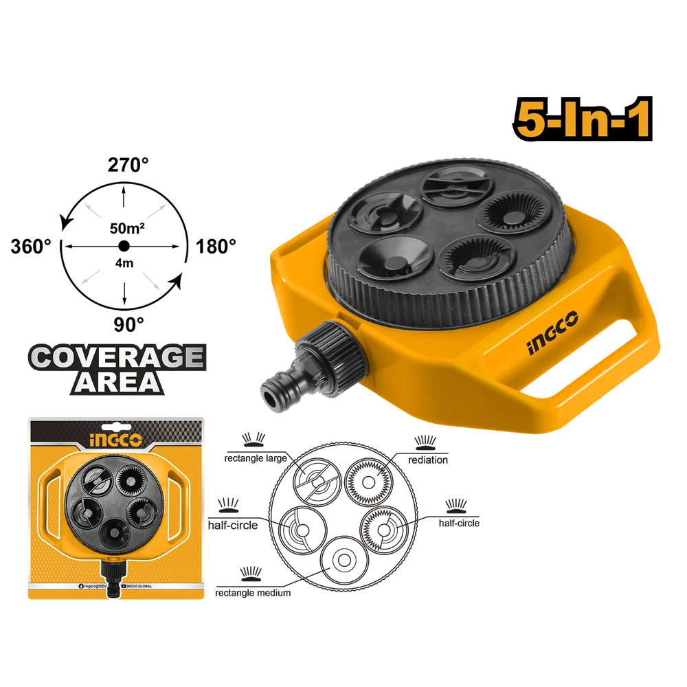 Plastic 5-In-1 Turret Sprinkler 3/4″ tool adaptor Meterial:ABS Net weight:160g Packed by paper hanger