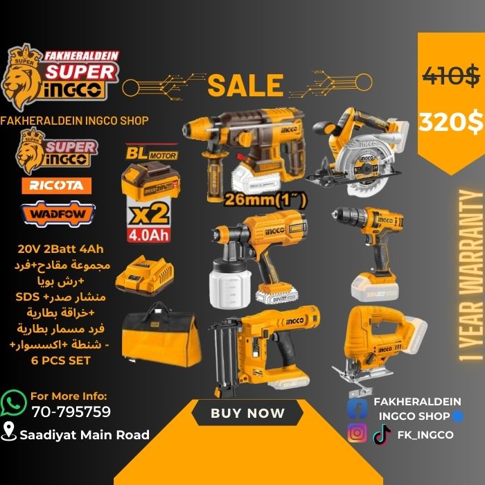 20V 2Batt 4Ah مجموعة مقادح+فرد رش بويا+ SDS +منشار صدر +خراقة بطارية فرد مسمار بطارية +شنطة +اكسسوار – 6 PCS SET