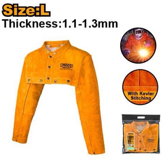 Size: L 1.1-1.3mm Spilt cowhide ,FR thread stitched. Can effectively block welding spark splash Packed by poly bag